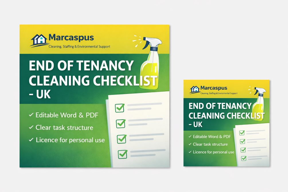 A practical, editable end of tenancy cleaning checklist designed for UK cleaning companies, sole traders, landlords, and letting agents.